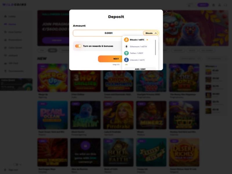 WildCoinsカジノは、多様な暗号通貨による入金オプションを提供しています。プレイヤーは、様々な人気の暗号通貨決済方法を利用して、即時入金と迅速な出金が可能です。