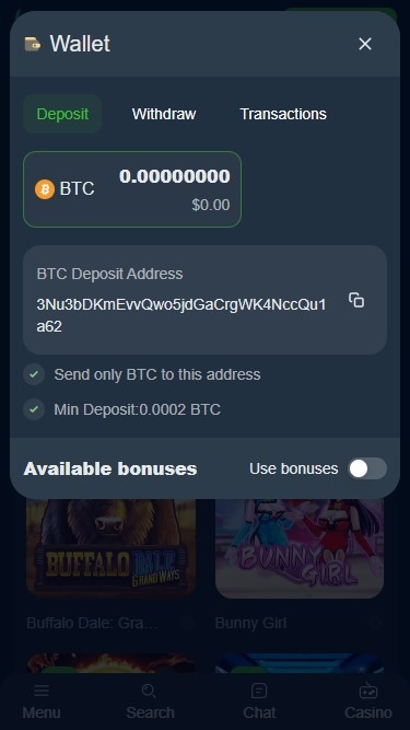 カスタマーサポートに関しては、Wild.io Crypto Casinoの担当者は非常に迅速に対応し、非常に親切です。メールまたはライブチャットで簡単に連絡を取ることができ、これは私たちにとって常に嬉しいことです。