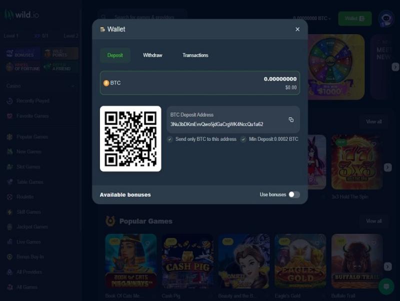 Wild.io Crypto Casino で時間を過ごすことに決めたなら、Eagle's Gold、Cash Pig、JetX、Buffalo Trail、The Candy Crush、Black Rider、Lord of The Seas、Wild Lady Cash、Hell Hot 100 など、最高のスロット ゲームのいくつかを楽しむことができます。