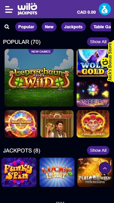 Wild Jackpots Casinoは Microgaming, Net Entertainment, Playtech, BetSoft, 1x2gaming, Amatic Industries, Evolution Gaming, iSoftBet, Oryx, Play'n GO, playson, Yggdrasil, Endorphina, Wazdan, Realistic Games, Booming Games, Pragmatic Play, Nolimit City, Red Tiger Gaming, Red Rake Gaming, Kalamba, Games Global, Amusnet Interactive, Ainsworth, NYX Interactive, Tom Horn Gaming, Gamomat, Authentic Gaming, Iron Dog Studio, Golden Hero, 4ThePlayer, Gamevy and Half Pixel Studiosを採用しており、カジノゲームはウェブベースのインスタントプレイプラットフォームを通じて提供されます。これにより、カジノ体験のあらゆる側面をインターネットブラウザから直接操作できます。また、カジノにはフルモバイルサイトも用意されており、スマートフォンやタブレットからプレイできます。