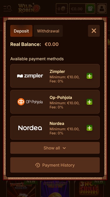 WildRobinカジノのウェブサイト全体が、モバイルギャンブルとベッティング体験に最適化されていることもお伝えしておきます。つまり、iOSとAndroidの両方のデバイスから、追加のアプリをダウンロードすることなく、すべてのゲームとカジノセクションに問題なくアクセスできます。