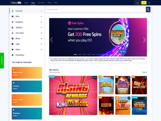 William Hillは Microgaming, Net Entertainment, Playtech, Barcrest, Big Time Gaming, ELK Studios, Evolution Gaming, EYECON, lightningboxgames, Novomatic, Play'n GO, Quickspin, Rabcat, Thunderkick, Yggdrasil, Endorphina, Realistic Games, Pragmatic Play, Nolimit City, Red Tiger Gaming, IGT, Skillzzgaming, Fantasma Games, Triple Edge Studios, Northern Lights Gaming, Stormcraft Studios, All41 Studios, Gameburger Studios, Shuffle Master, SpinPlay Games, Real Dealer Studios, Games Global, Wizard Games, Ainsworth, Bally Technologies, Blueprint Gaming, Cozy Games, Greentube, Leander Games, Merkur Gaming, NextGen, Pariplay, WMS, Inspired Gaming, SG Interactive, Red7Mobile, CORE Gaming, Reel Time Gaming, Iron Dog Studio, Betdigital, Just For The Win, The Games Company, Reflex Gaming, Storm Gaming Technology, PearFiction Studios, Wild Streak Gaming, Slingshot Studios, Fortune Factory Studios, 4ThePlayer, Gamevy, Crazy Tooth Studio, High 5 Games, ReelPlay, AGS Interactive, Alchemy Gaming, Rarestone Gaming, Gold Coin Studios and Bang Bang Gamesを採用しており、数百ものゲームを提供しています。幅広いゲームの種類と豊富なゲームラインナップは、ソフトウェアのダウンロードなしでウェブブラウザから直接プレイできます。Blackjack