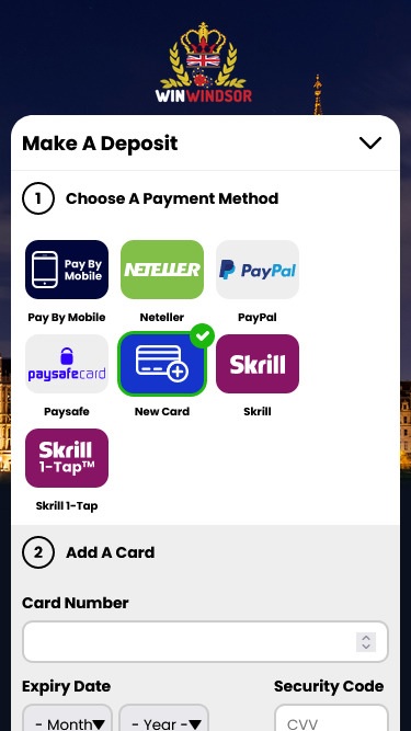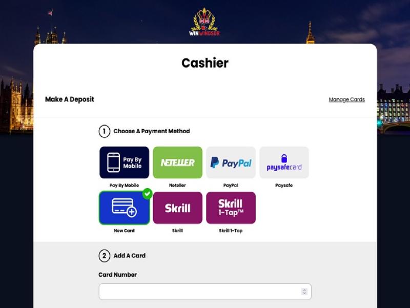 プレイヤーは、Skrill、Neteller、Paysafecard、Visa、またはMasterCardを使用して入出金できます。残念ながら、Win Windsor Casinoでは暗号通貨をご利用いただくオプションはまだありません。