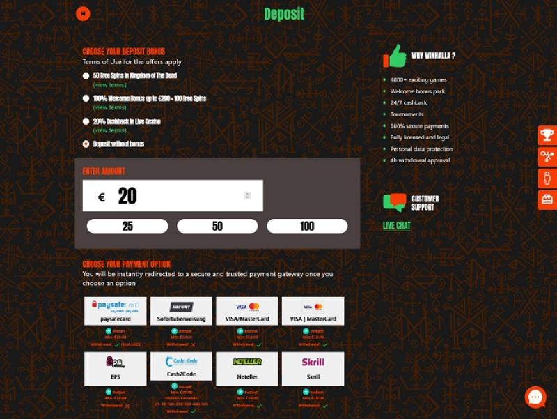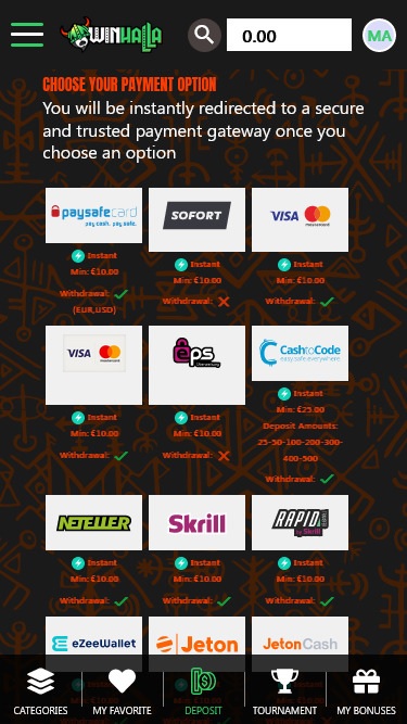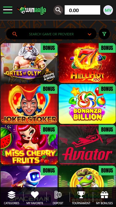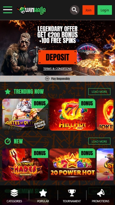 Winhallaのカジノページは、デスクトップとモバイルデバイス、そしてあらゆる画面サイズに最適化されています。一見すると、このウェブサイトは非常に楽しく、利用可能なゲームが注目を集めているように見えます。