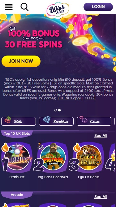Wink Slotsは2016年に設立されたオンラインベッティングサイトです。Cassava Enterprises Limitedは、他のオンラインカジノも運営しています。このカジノでは、プレイヤー向けに様々なソフトウェアが用意されており、ボーナスの賭け条件や出金条件も良好です。そのため、Wink Slotsは優れたカジノであり、このサイトでプレイできるすべてのプレイヤーにおすすめします。カジノ情報