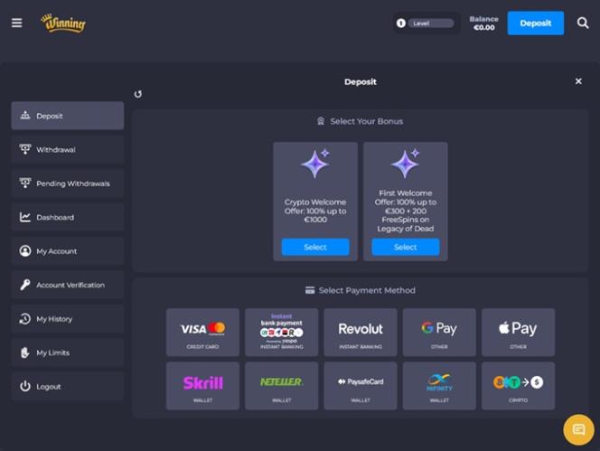 - Winning Casino は、何の説明もなく、プレイヤーのアカウントを登録しない、またはすでに登録されているアカウントを閉鎖する権利を有します。