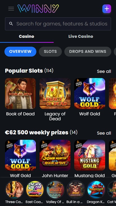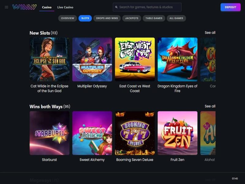 Winnyは Microgaming, Net Entertainment, Playtech, BetSoft, 1x2gaming, Amatic Industries, Big Time Gaming, ELK Studios, Evolution Gaming, lightningboxgames, Novomatic, Play'n GO, playson, Quickspin, Rabcat, Relax Gaming, Thunderkick, Yggdrasil, Endorphina, Realistic Games, Betgames, Booming Games, Pragmatic Play, Nolimit City, Red Tiger Gaming, Red Rake Gaming, Skillzzgaming, Fantasma Games, Revolver Gaming, Triple Edge Studios, BGAMING, Northern Lights Gaming, Evoplay, Stormcraft Studios, Switch Studios, Electric Elephant Games, Bulletproof Games, All41 Studios, Gluck Games, Gameburger Studios, Pulse 8 Studios, Slot Factory, Neon Valley Studios, Golden Rock Studios, Spearhead Studios, Swintt, TrueLab Games, SpinPlay Games, HungryBear Gaming, Real Dealer Studios, GONG Gaming, Blue Guru Games, Holle Games, Buck Stakes Entertainment, Games Global, Ash Gaming, Greentube, Push Gaming, Tom Horn Gaming, Gamomat, Bally Wulff, Iron Dog Studio, Old Skool Studios, Foxium, PearFiction Studios, Wild Streak Gaming, Slingshot Studios, Golden Hero, 4ThePlayer, AvatarUX, Gamevy, Crazy Tooth Studio, Alchemy Gaming, Rarestone Gaming, Black Pudding Games, Snowborn Games, Boomerang Studios, Hacksaw Gaming, Max Win Gaming, Gold Coin Studios, Bang Bang Games, Half Pixel Studios, SilverBack Gaming, Peter And Sons, Aurum Signature Studios, Area Vegas, Wishbone Games, Circular Arrow, Print Studios, Gaming Corps, HammerTime Games, Four Leaf Gaming, INO Games, Nailed It! Games, Neko Games and Reel Kingdomによって運営されており、カジノはインターネットブラウザからアクセスできるウェブベースのプラットフォームを提供しています。サイトはデザインが優れており、パソコンからでも簡単に操作できました。カジノはモバイルプレイにも対応しており、スマートフォンやタブレットでもプレイできます。Blackjack