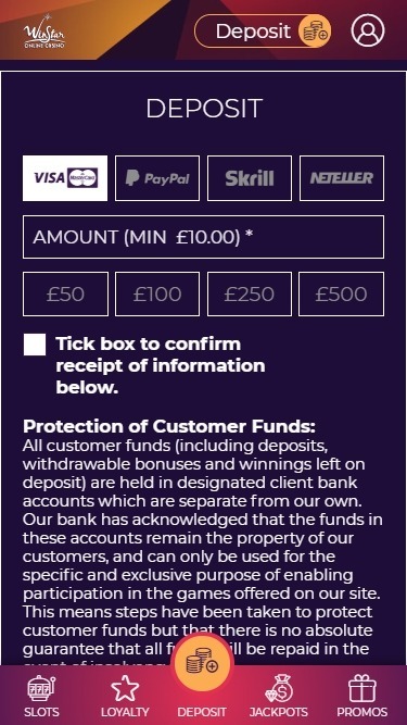 Reels Royaleのバンキングシステムは非常に優れており、クレジットカードとPayPalでの入金・出金が可能です。出金方法の選択肢がもっと多様化すれば良いのですが、ここでの出金方法は非常に安定しています。PayPalでは最低5ポンドから最高10万ポンドまで出金可能です。唯一の欠点は、PayPalの場合は出金に1~3営業日、クレジットカードの場合は賞金が入金されるまでに少し時間がかかることです。