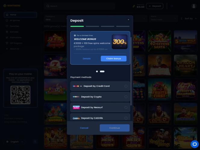 Winthereは、オンラインスロット、ライブディーラー、テーブルゲームなど、多種多様なゲームとアクティビティに加え、豊富なプロモーションやボーナスを提供することで、プレイヤーに忘れられないギャンブル体験を提供することを約束する現代的なギャンブルサイトです。ベルギー、フランス、イギリス、イタリア、スペイン、オーストラリア、カナダ、オランダからのプレイヤーをウェブサイトに迎え、Winthereが提供するあらゆるものをぜひお楽しみください。