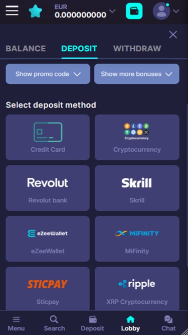 WishCasinoのキャッシャーには、プレイヤーが選択できる広く普及している決済方法が多数用意されています。法定通貨だけでなく、最近オンラインギャンブルでよく使われる人気のデジタル通貨も含まれています。