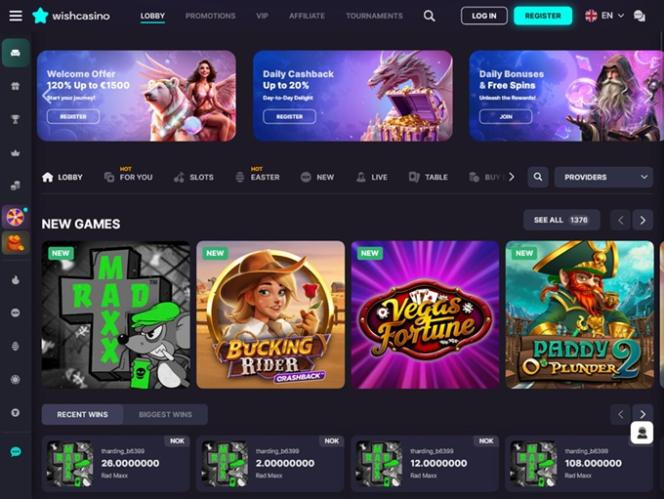 WishCasinoは、あらゆるスキルレベルとゲーム嗜好のプレイヤーに最適な、一流ゲームが満載の充実したスロットゲームコレクションを提供しています。プレイヤーは、魅力的なメカニズムと報酬システムを備えた、クラシックなスロットから革新的で斬新なスロットゲームまで、様々なゲームをお楽しみいただけます。