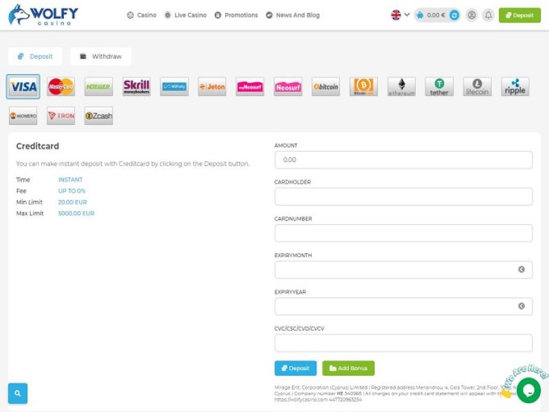Wolfy Casino で利用できる支払い方法の概要は次のとおりです。