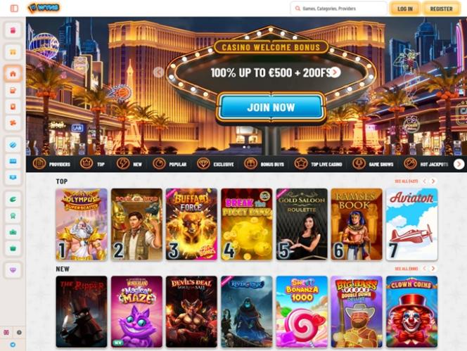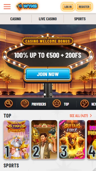 Wyns Casinoは、シームレスなカジノ体験とスポーツベッティング体験を、仮想通貨対応プラットフォーム上で提供するオンラインゲームサイトです。プレイヤーの皆様は、多彩なゲームライブラリと、平日を通して楽しめる魅力的なプロモーションの数々をお楽しみいただけます。