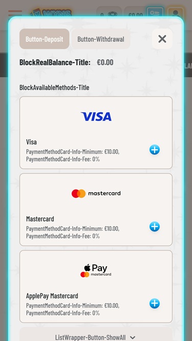 Wyns Casino は、 Tobique の規制機関が発行したオンライン運営ライセンスを保有しており、同社のチームは主にドイツ、オーストリア、スイスからの顧客を対象としていることに留意する必要があります。