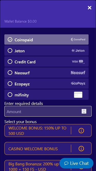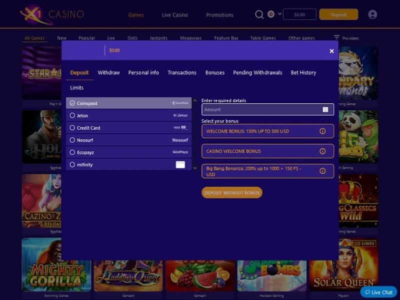 プレイヤーが利用できる決済方法に関しては、残念ながら暗号通貨での入出金はできません。しかし、X1カジノは豊富な決済オプションを提供しています。最もよく使われている決済オプションには、Visa、Neteller、ecoPayz、Flexepin、Paysafecard、Sofortなどがあります。Skrillも決済方法として利用可能です。