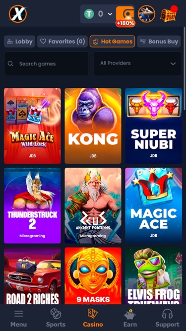 視覚的には、ウェブサイト全体のデザインに感銘を受けました。プレイヤーは、直感的で使いやすいシンプルなユーザーインターフェースを活用し、快適な環境ですべてのゲームを楽しむことができます。ホームページは、暗い背景とオレンジの色合いで構成された魅力的なカラーパレットを採用しています。