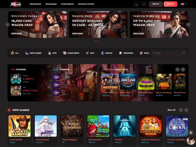 アジアをテーマにしたオンラインカジノがお好きなら、きっとここで楽しい時間を過ごせるでしょう。このカジノの雰囲気は、日本の伝統文化からインスピレーションを得たアートスタイルで表現されており、恐ろしい侍や恐ろしいヤクザといった、日本文化のあらゆる要素が美しく描かれています。