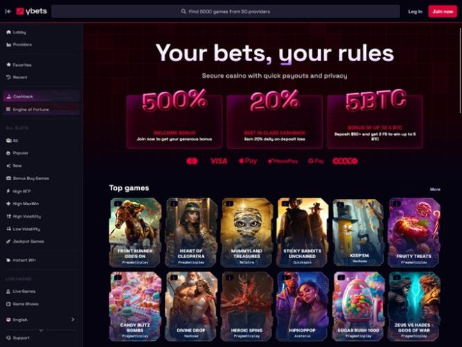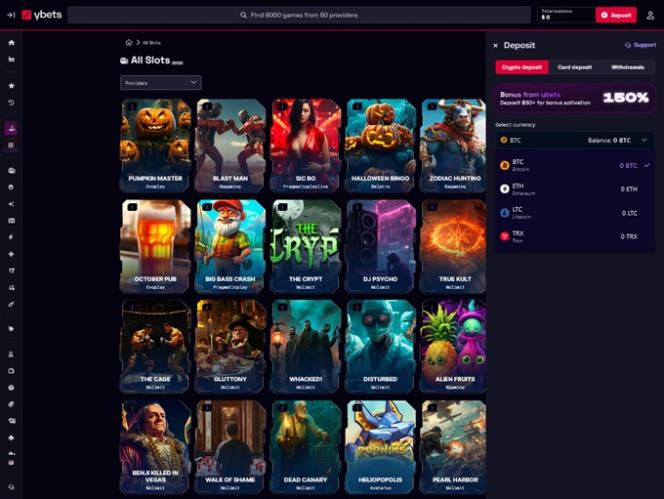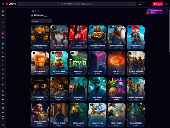Ybetsカジノは、数多くの有名ソフトウェアプロバイダーを擁し、豊富な選択肢を提供しています。70以上のスタジオと6000以上のゲームが用意されており、非常に充実したタイトルライブラリとなっています。