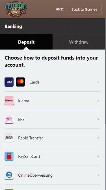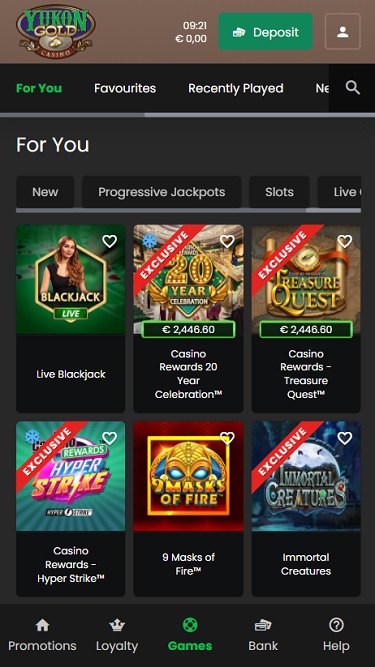 Yukon Gold Casinoは Microgaming, Evolution Gaming, Rabcat, Triple Edge Studios, Northern Lights Gaming, Stormcraft Studios, Switch Studios, Electric Elephant Games, All41 Studios, Gameburger Studios, Pulse 8 Studios, Neon Valley Studios, SpinPlay Games, Real Dealer Studios, GONG Gaming, On Air Entertainment, Buck Stakes Entertainment, Games Global, Old Skool Studios, Foxium, Just For The Win, PearFiction Studios, Slingshot Studios, Fortune Factory Studios, Crazy Tooth Studio, Alchemy Gaming, Snowborn Games, Gold Coin Studios, Half Pixel Studios, Eurostar Studios and Aurum Signature Studiosを採用しており、プレイヤーは巨大なプラットフォームを通じて数百ものゲームにアクセスできます。カジノにはウェブベースのプラットフォームと、カジノとゲームをPCに直接インストールできるダウンロード可能なソフトウェアクライアントからアクセスできます。2つのプラットフォームに違いはなく、プレイヤーは好みのプラットフォームを選択できます。Blackjack