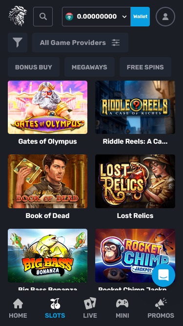 ホームページは、他のセクションを閲覧するためのハブです。ページ上部では、現在最も魅力的なプロモーションや、最も人気のあるゲームをすべてご覧いただけます。これらはすべて適切に分類されています。さらに、ここでは、注目のソフトウェア開発会社別に検索を絞り込むことができます。