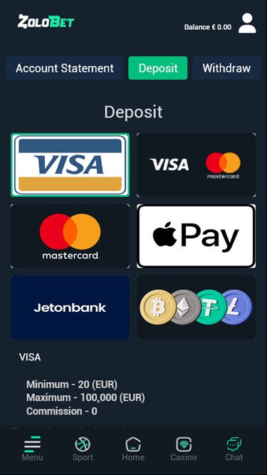 決済手段に関しては、プレイヤーはビットコイン、カルダノ、イーサリアム、ライトコイン、ソラナ、テザー、リップルといった仮想通貨を含む様々な決済手段を用いてカジノ残高への入出金が可能です。もちろん、 Visa 、 Mastercard 、銀行振込、 Apple Payといった従来の銀行決済手段も多数ご利用いただけます。