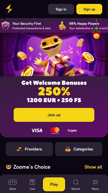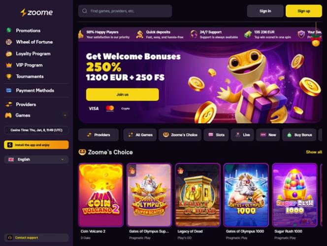 Zoome Casino は、最も評価の高いカジノ ソフトウェア サプライヤーの一部と、革新的なゲームと斬新なアイデアでトップに上り詰めた多くの小規模スタジオによって運営されています。