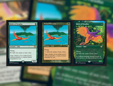 人々はまた、近々発売される『ドミナリア リマスター』のセットについても言及しています。このセットでは、Birds of Paradise (Magic Unlimited、1993 年 12 月) のオリジナル アートがレトロな枠で再版される予定で、基本的には最近発売されたマジック 30 周年 (記念) のカードとよく似ていますが、特別なマジック 30 周年記念の裏面ではなく、実際のマジック: ザ ギャザリングの裏面になります。