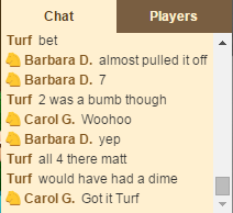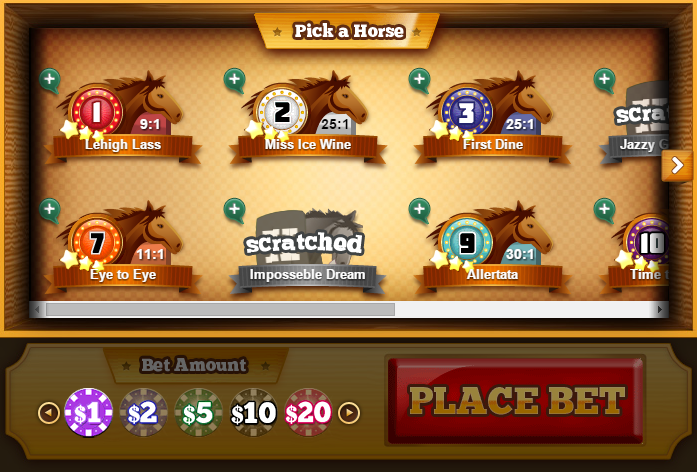 ラスベガスの競馬ブックとは異なり、 ダービー・ジャックポットでは一度に1レースずつ開催されます。アメリカ各地の複数の競馬場でローテーションで開催されているようです。1レースが終わると「次のレース」をクリックすると、別の場所の別のレースへと移動します。よりソーシャルな雰囲気を演出するために、チャットボックスが常時稼働しており、プレイヤーは意見を投稿したり、勝者を祝福したり、負けた相手を慰め合ったりすることができます。また、1日のトップ10プレイヤーのリーダーボードも用意されています。このリストには各プレイヤーのポイントが表示されていますが、ポイントがどのように獲得されるのかは分かりません。