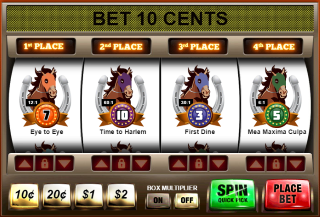 - ダイム/スーパーフェクタ。1着、2着、3着、4着の馬に、その順位通りに賭けます。プレイヤーは、この賭けを「ボックス」方式で、24の順位全てをカバーすることができます。