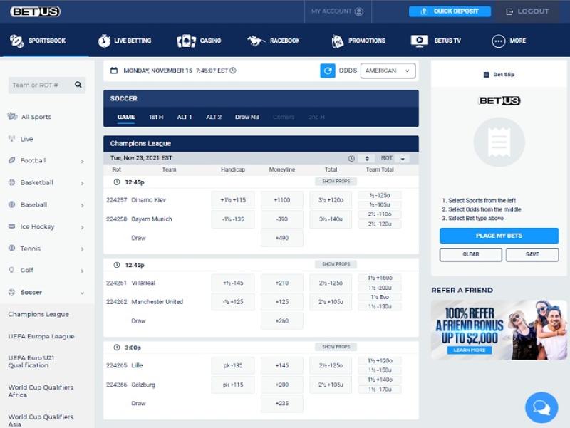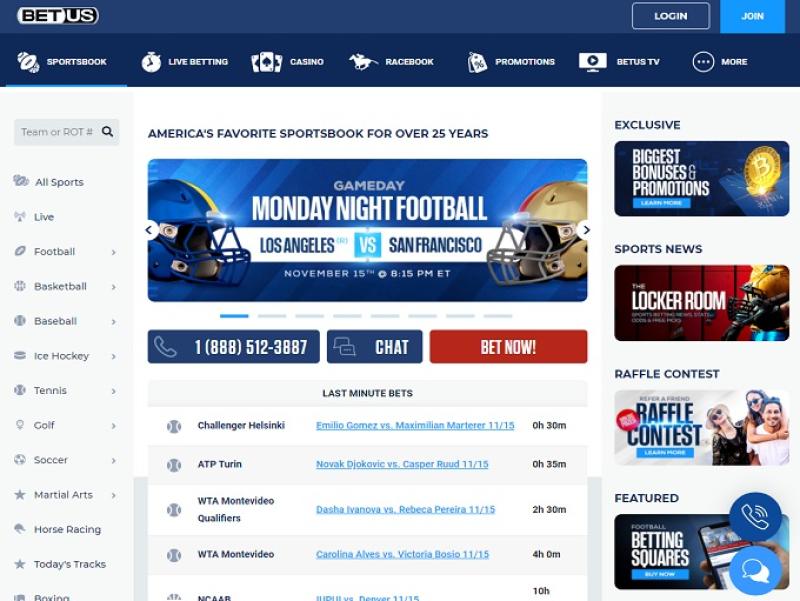 BetUSのスポーツブック&ゲーミングプロバイダーは1994年からオンライン運営を行っており、競争の激しいこの市場において25年以上の経験を誇ります。非常に幅広いスポーツやその他のイベントにおいて、最新のオッズと分析、そして最新のギャンブルチャンスを提供しています。ウェブサイトは非常にユーザーフレンドリーで、操作も簡単で、視覚的にも魅力的です。この運営会社は、信頼できるスポーツブックに求められるほぼすべての条件を満たしています。