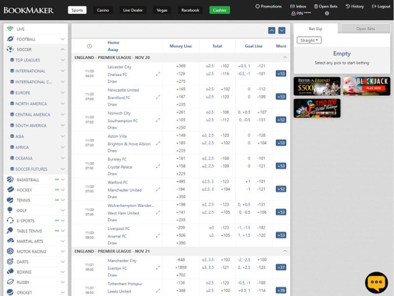 このスポーツブックが提供するオンラインテーブルゲームに加え、ウェブサイトでは他にも多くの主要スポーツに賭けることができます。各スポーツやイベントごとに、幅広い種類の賭け方を提供しています。