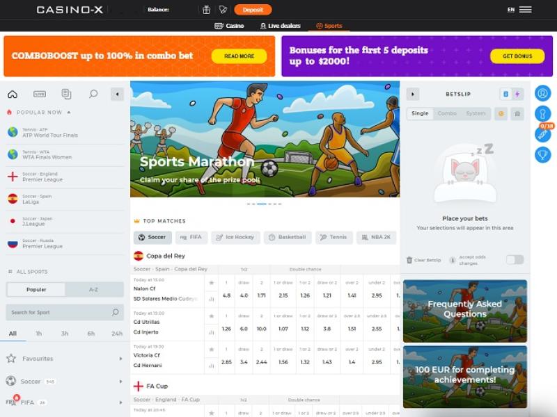 総合的に見て、Casino-Xは巨大なスポーツベッティングサイトであり、賭ける相手に膨大な数のスポーツイベントを惜しみなく提供しています。スポーツブックでは、数十ものスポーツ、バーチャルスポーツ、eスポーツ、レースイベントに賭けることができ、ライブベッティング機能も備えています。