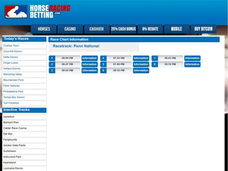 この場外賭博(OTB)プロバイダーがカバーする競馬場は次のとおりです:ブリーダーズカップ全レース、ベルモントステークス、ケンタッキーダービー、プリークネスステークス、アクエダクト、アーリントン、ベルモントパーク、チャーチルダウンズ、デルマー競馬場、ガルフストリームパーク競馬場&カジノ、ハリウッドパーク競馬場、キーンランド競馬場、ルイジアナダウンズカジノ&競馬場、サンタアニタパーク、サラトガ競馬場、カルダーカジノ&競馬場、ホーソーン競馬場、モンマスパーク競馬場、マウンテニアカジノ競馬場&リゾート、ピムリコ競馬場、ターフウェイパーク競馬場、ロスアラミトス競馬場、デラウェアパーク競馬場、エメラルドダウンズ、フィンガーレイクスゲーミング&競馬場、フージャーパーク競馬場、ペンナショナル競馬場、ゴールデンゲートフィールズ、ターフパラダイス、フィラデルフィア競馬場、サフォークダウンズ、タンパベイダウンズ、ウッドバイン競馬場、エリスパーク競馬場、ローレルパークメドウランズ ハーネス レーシング、バルモラル パーク競馬場、コロニアル ダウンズ競馬場、フージャー パーク競馬場、ケンタッキー ダウンズ、メイウッド パーク競馬場、モホーク競馬場、ノースフィールド パーク、リバー ダウンズ クラブ、シスルダウン競馬場、ウッドバイン ハーネス レーストラック、ヨンカーズ レースウェイ。