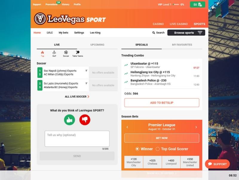 LeoVegas Sport は、フロントエンドのユーザー インターフェイス、オッズ コンパイル、顧客インテリジェンスのために Kambi スポーツブック プラットフォームを運営する最初のオペレーターの 1 つです。