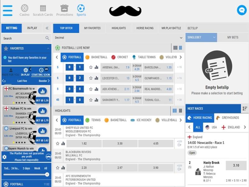 この新しくエキサイティングなオンラインゲームプロバイダー、カジノ、そしてスポーツブックは、世界中のスポーツベッターを魅了することを目指しています。このブランドは、マルタの法律と規制の下で統治・規制されているMarketplay LTDによって所有・運営されています。このウェブサイトのギャンブルオプションは、Aspire Global International LTDによって運営・管理されています。Mr. Playのスポーツブックページは、シンプルで簡潔、そして操作しやすく、最高級のスポーツベッティングに期待されるあらゆる機能を備えています。