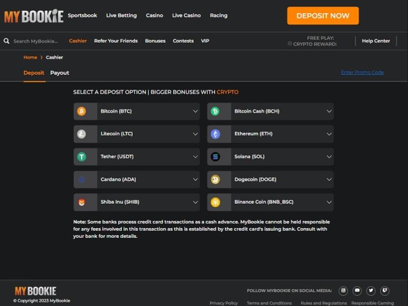 MyBookieには、様々な入出金方法があります。それぞれに長所と短所がありますが、可能であればビットコインでの入金をお勧めします。ビットコインは勝利金を最も早く受け取ることができるからです。ただし、サイト上では処理に48時間かかる場合があり、方法ごとに最低入金額と最高入金額が異なります。
