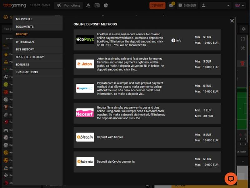- 入金は気軽に利用できる低額の限度額から始まり、ほとんどの入金方法は即時に行われます。