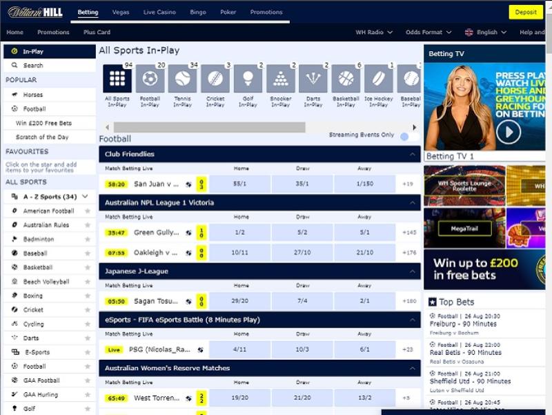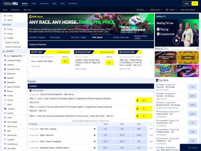 ウィリアムヒルのスポーツブックは非常に充実しており、主要なスポーツのあらゆるジャンルに賭けることができます。対象となるスポーツには、競馬、サッカー、オーストラリアンフットボール、アメリカンフットボール、バスケットボールなどがあります。また、ストレートベット、パーレーベット、ライブインプレイベットなどのオプションもご利用いただけます。