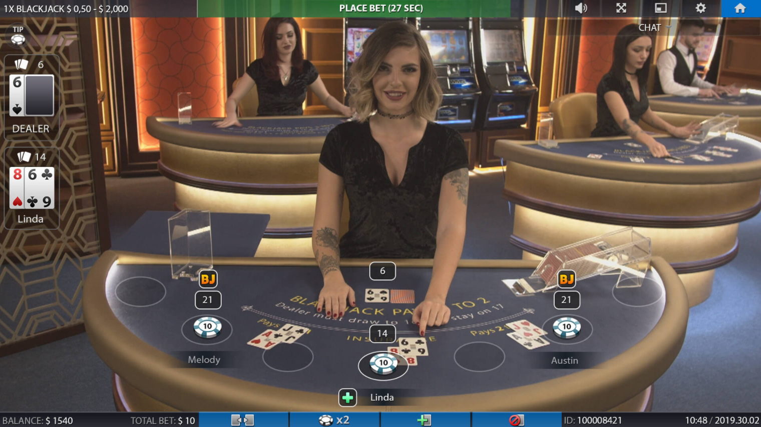 無制限ブラックジャックも利用可能で、無制限の数のプレイヤーが同じハンドをプレイできます。ブラックジャックのルールとサイドベットは、標準的なブラックジャック ゲームと同じだと思います。