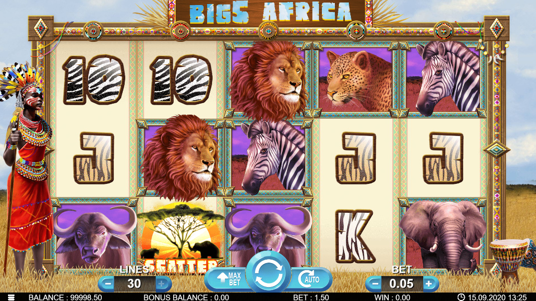 2021年2月1日にリリースされたBig5 Africaは、5x3リールと30ペイラインを備えたビデオスロットで、サバンナの奥深くへと誘います。RTPは95.24%、ヒット率は低く、ボラティリティは中~高と、勝利数は少ないものの、ヒット時にはより大きな配当を獲得できる可能性があります。