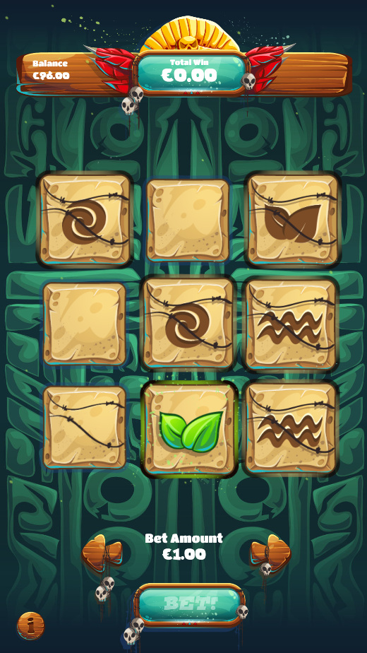 Shaman's Jungle はスクラッチ カード ゲームのようなもので、プレイヤーは 3x3 のグリッドで 3 つの正方形を選びます。特定のシンボルが 2 回または 3 回選ばれると勝ちとなります。これは自由意志の要素があり、上記の定義による「スロット」ではないように思われるかもしれません。ただし、スキルの要素はなく、「スロット」として十分シンプルです。リターンに関する情報は提供されていません。