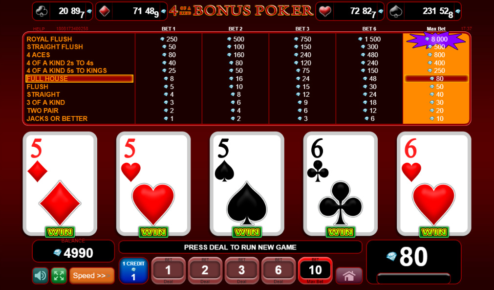 Bonus Poker | 99.17% | いいえ | 1-2-3-4-5-8-25-40-80-50-800 | いいえ |