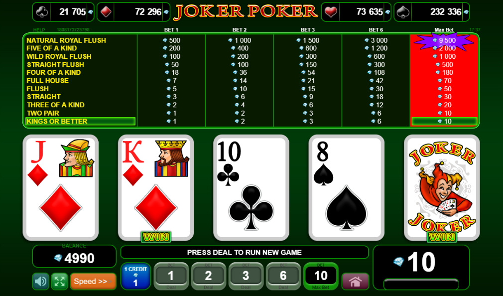 このインタビューの時点では、3 つのビデオ ポーカー ゲームはどれも非常に単純でした。ロイヤル フラッシュでコイン ベット 1 枚あたり 950 コイン (10 コイン ベットに基づく) が支払われるジョーカー ポーカー ゲームのリターンを得るには、ビデオ ポーカー アナライザーを使用する必要がありました。