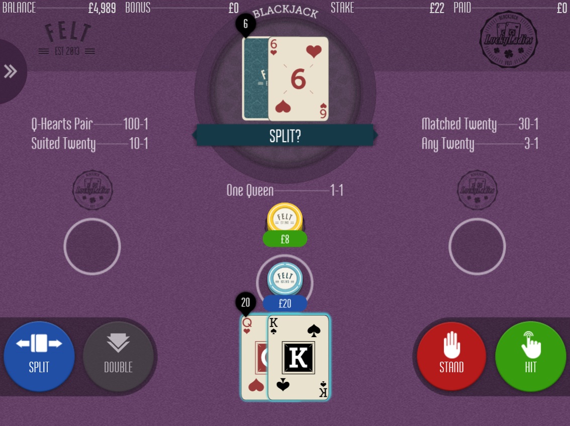 Felt では 7 つのブラックジャック ゲームを提供しています。これらはすべて、次の同じ基本ルールを採用しています。