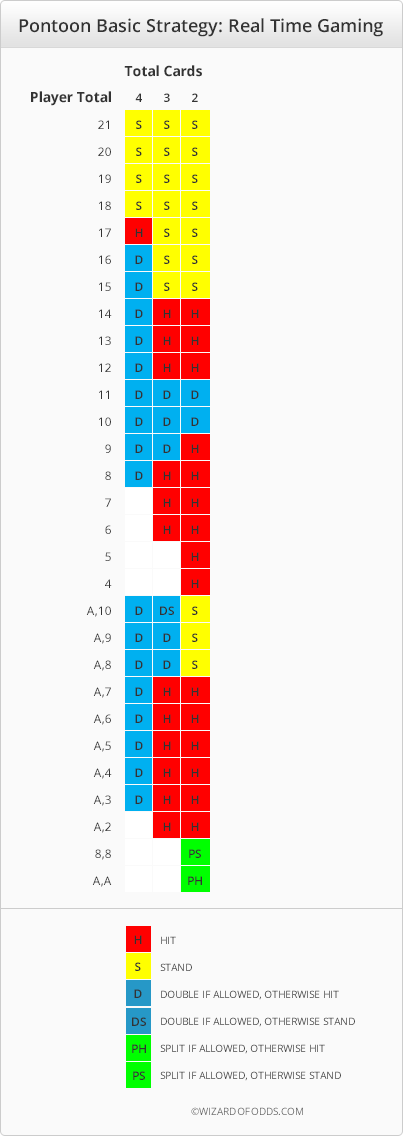 次の表は、Real Time Gaming ルールと同じポントゥーンの基本戦略を示しています。