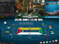 私の知る限り、スーパー カラー シックボーは Gameplay Interactive 独自のゲームです。従来のシックボーと似ていますが、サイコロの代わりに 3 つの十二面体 (12 面のサイコロ) を使ってプレイします。すべてのルールと分析については、スーパー カラー シックボーのページをご覧ください。