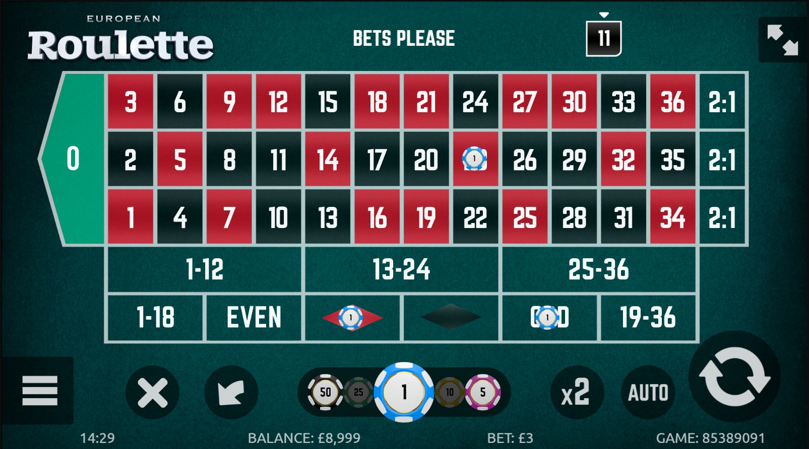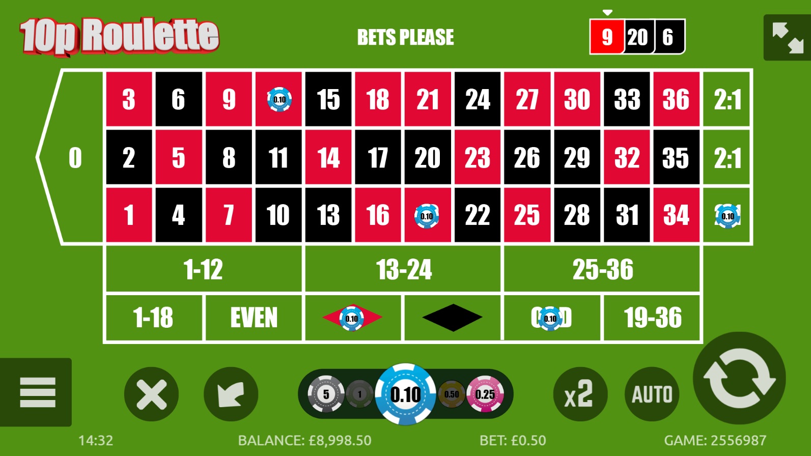 - 10p ルーレット — シングルゼロ ルーレットと同じですが、最低賭け金は 0.10 ポンドと低額です。ハウス エッジはすべての賭けで 2.70% です。