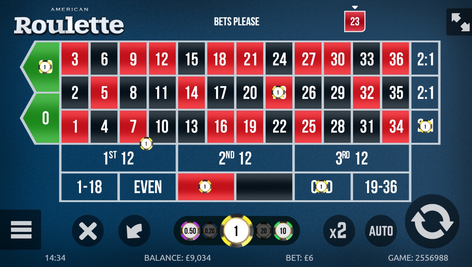 - アメリカン ルーレット — 基本的なダブル ゼロ ルーレット。ハウス エッジは、5 つの数字 0-00-1-2-3 の組み合わせを除き、すべての賭けで 5.26% です。