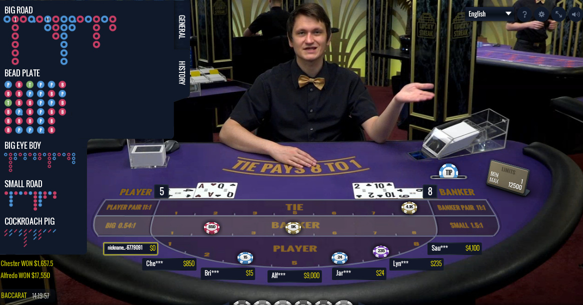 標準的なバカラのルールに従い、バンカーの賭けで勝った場合は 0.95 対 1 の配当となります。以下は利用可能な賭けの完全なリストです。