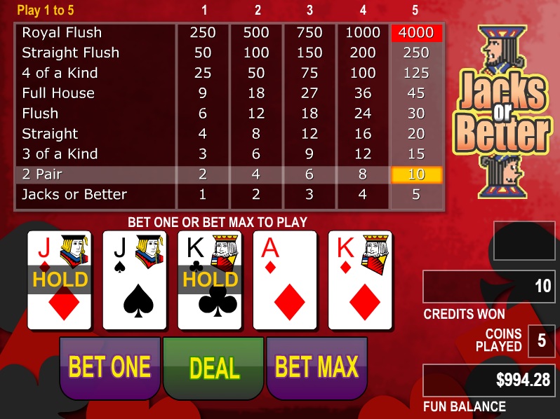 Jacks or Better (3-play) | 97.30% | はい | 1-2-3-4-5-8-25-50-800 | いいえ |